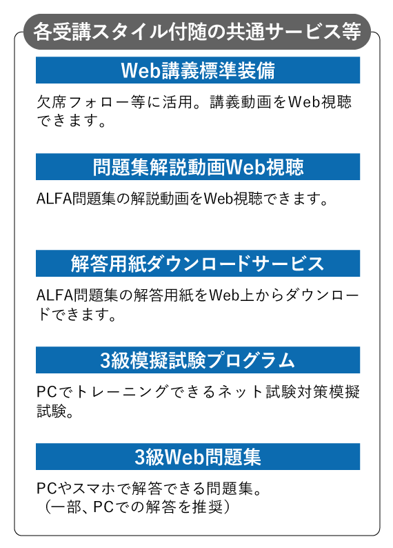 さらにWeb講義が標準装備されており、予習や復習はもちろん欠席フォローとしても利用でき安心して学習することができます。