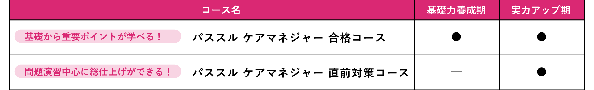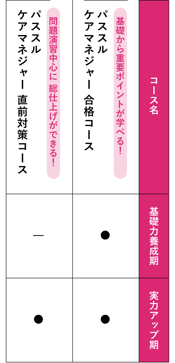 学習状況に合わせて2つのコースをご用意しています。 コースごとに含まれている講義が異なりますので、下記でご確認ください。