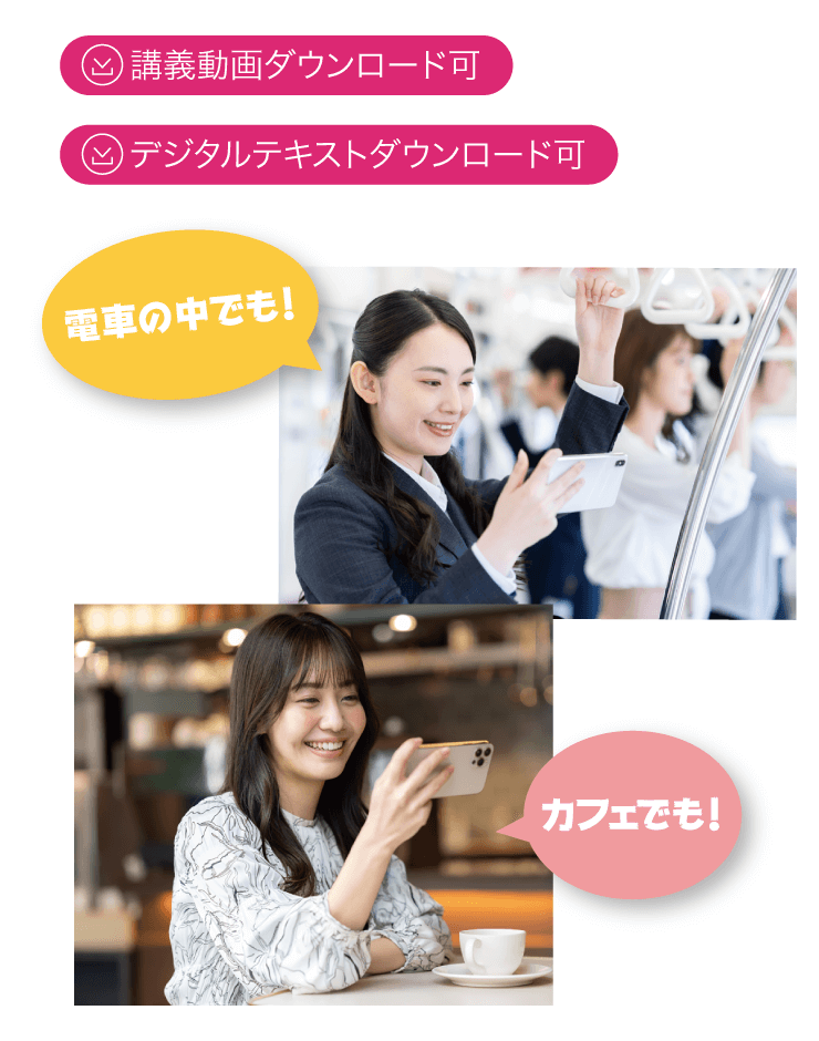 しかもこれらすべてがスマホで完結!場所や時間を選ばず、自分の都合にあわせて学習できます。