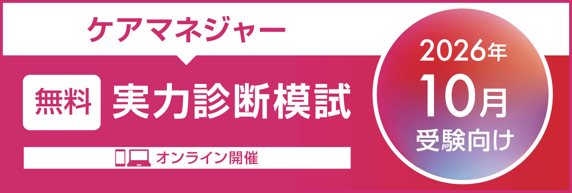 2026年10月のケアマネジャー試験を受験予定の方を対象に、大原オリジナルの「実力診断模試」を用いて現時点での実力を無料診断いたします。