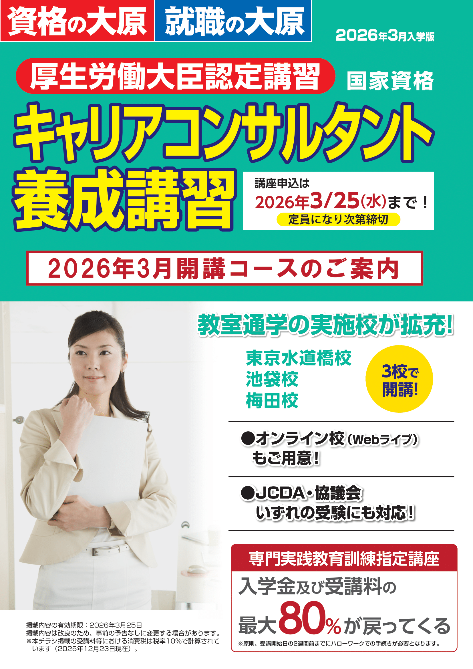 キャリアコンサルタント養成講習2026年3月開講クラスのご案内