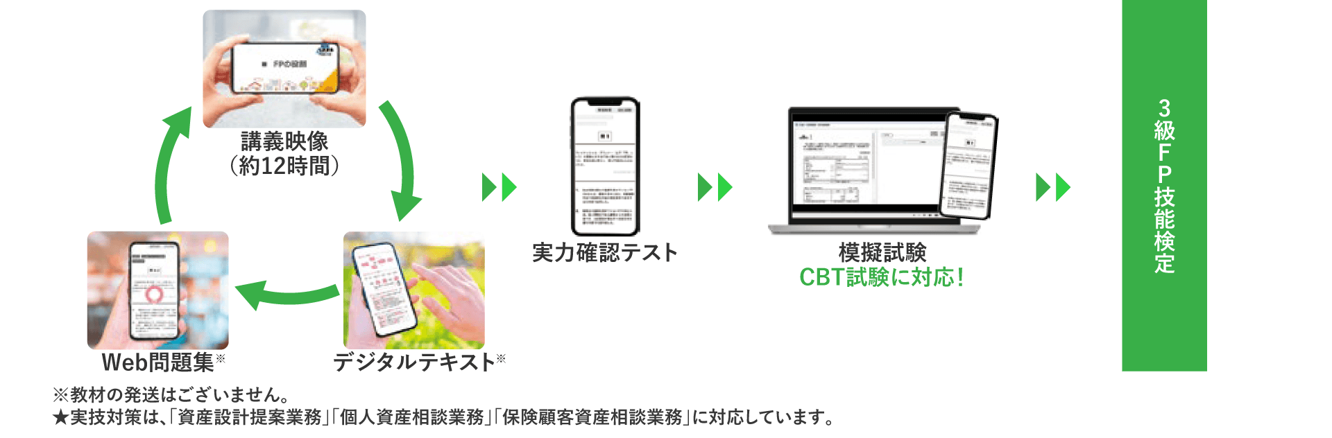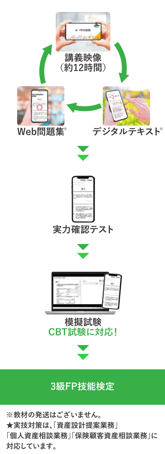 教材もデジタルテキストをご用意。場所を選ばず勉強できます!また、ネット試験はPC受験。アウトプット(問題演習)はスマホ+PC等で対策し、確実に合格をつかみましょう!