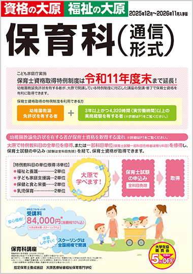 専門学校<保育士>平日に毎日通学し、資格取得や高度な技術を身につけ、就職・公務員合格をめざします