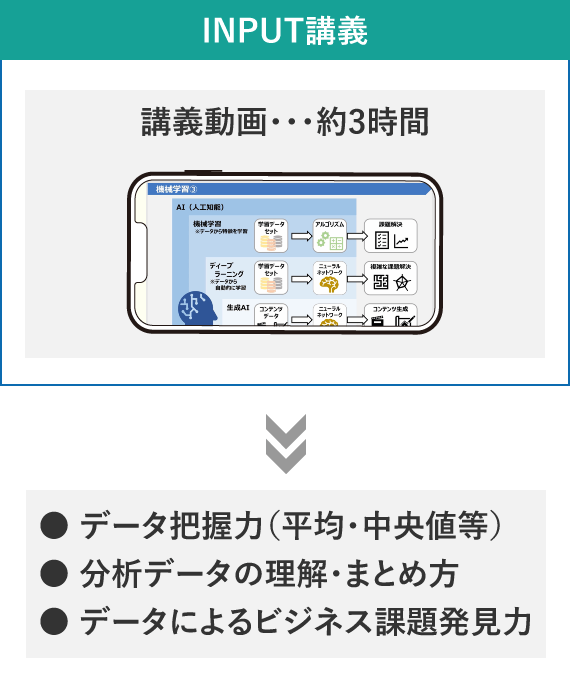 データ把握と代表的な手法を学び、ビジネスで活かすことができる基本的な統計知識を養います。