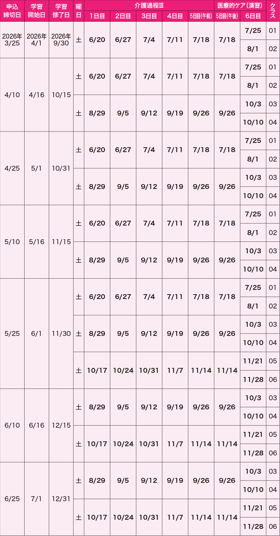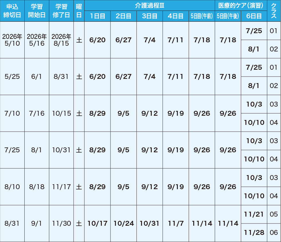※3ヵ月コースはホームヘルパー2級取得者および介護職員初任者研修修了者が対象です。