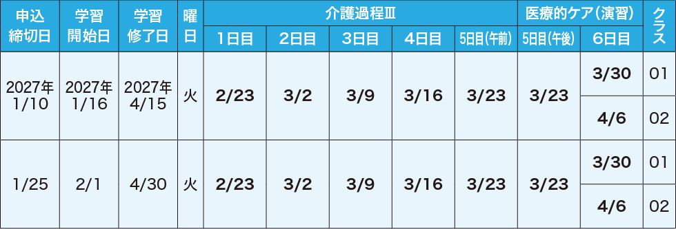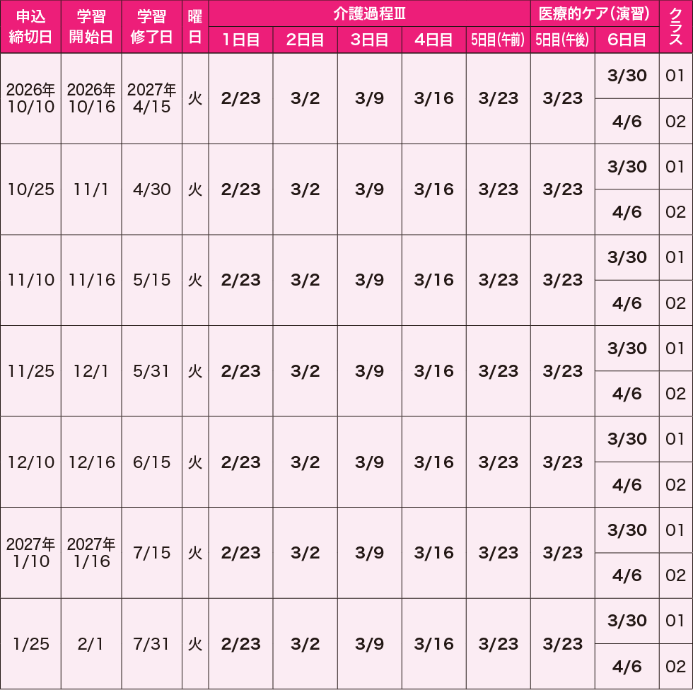 ※3ヵ月コースはホームヘルパー2級取得者および介護職員初任者研修修了者が対象です。