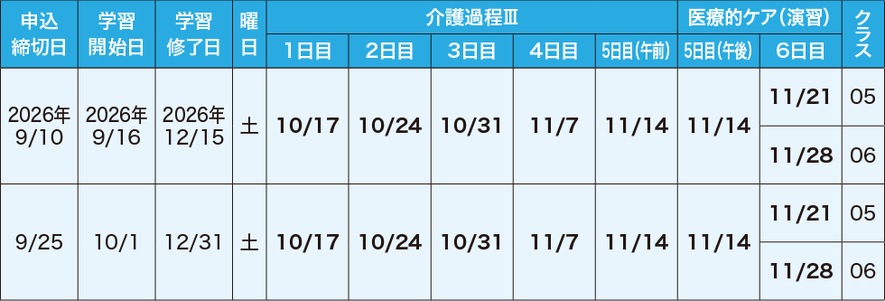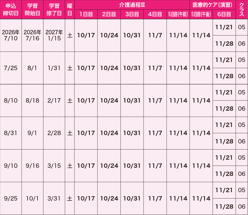 ※3ヵ月コースはホームヘルパー2級取得者および介護職員初任者研修修了者が対象です。