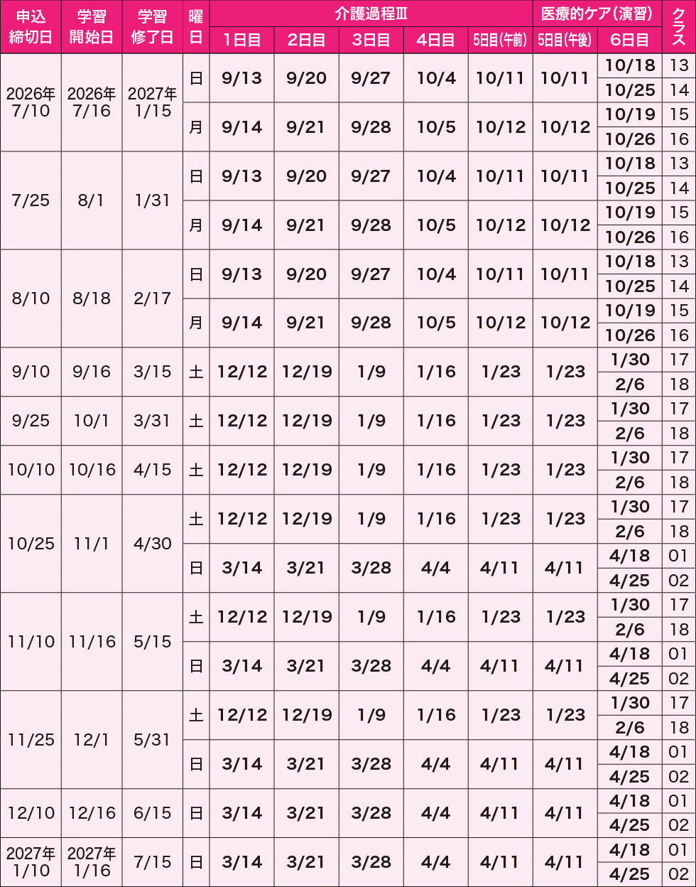 スクーリングの開始日と終了日をご確認の上お申込みをお願いいたします。