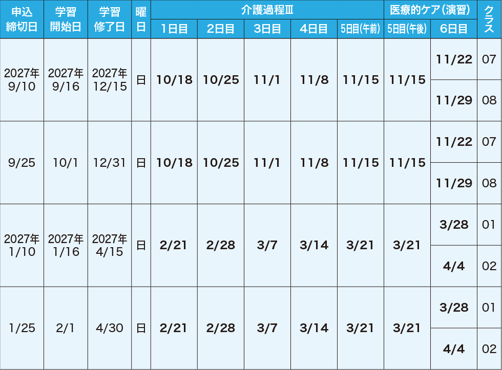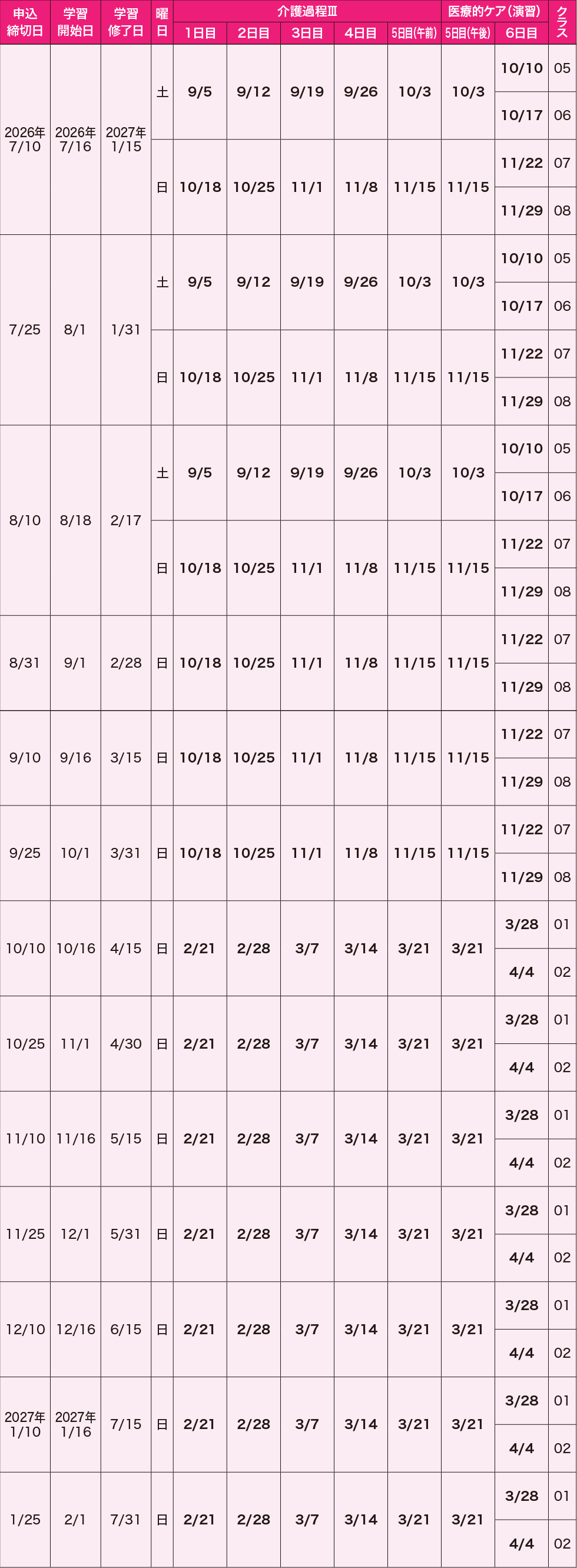 ※3ヵ月コースはホームヘルパー2級取得者および介護職員初任者研修修了者が対象です。