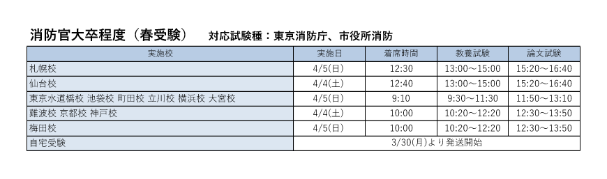 消防官 公開模擬試験 会場受験各校日程・自宅受験発送日※2025年12月1日現在