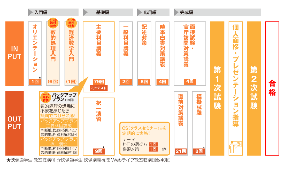 短期合格を目指す方や再受験の方にオススメの重要科目に特化したカリキュラムで国家一般職・地方上級合格を目指します。
