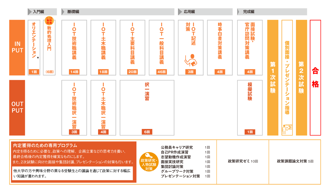 通常講義の3分の1の時間で学習できるWeb講義(IOT50)で効率的に、技術職区分のうち土木職区分の試験を目指せます。