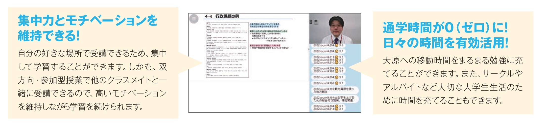 江尻講師:科目によって自分に合うコースを選択されていたのですね。ライブ配信とアーカイブ配信、どちらの利用が多かったですか?
