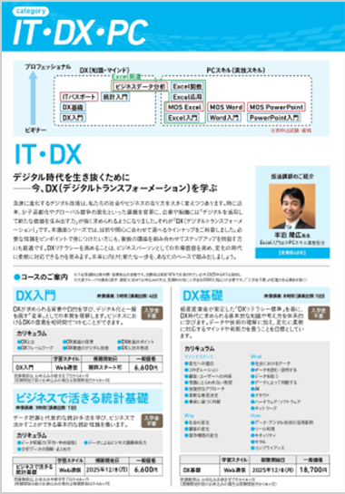 申込手続きのご案内や試験内容・コース内容などが紹介されているパソコン講座のパンフレットは、下記よりダウンロードしてください。