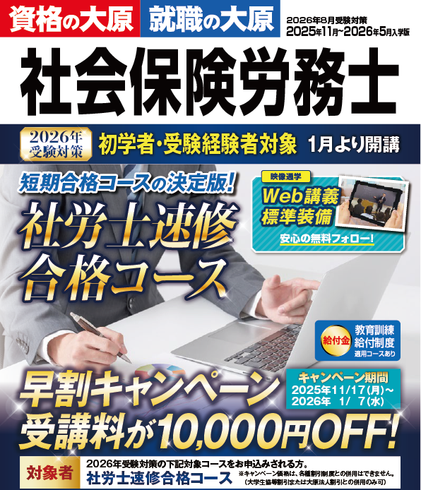 2026年受験対策コースの受講料が今なら10,000円OFF!