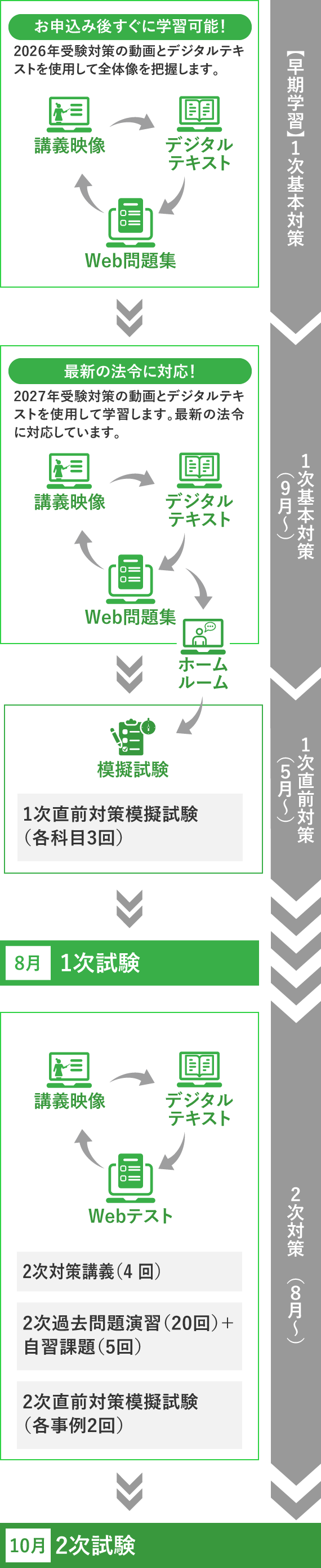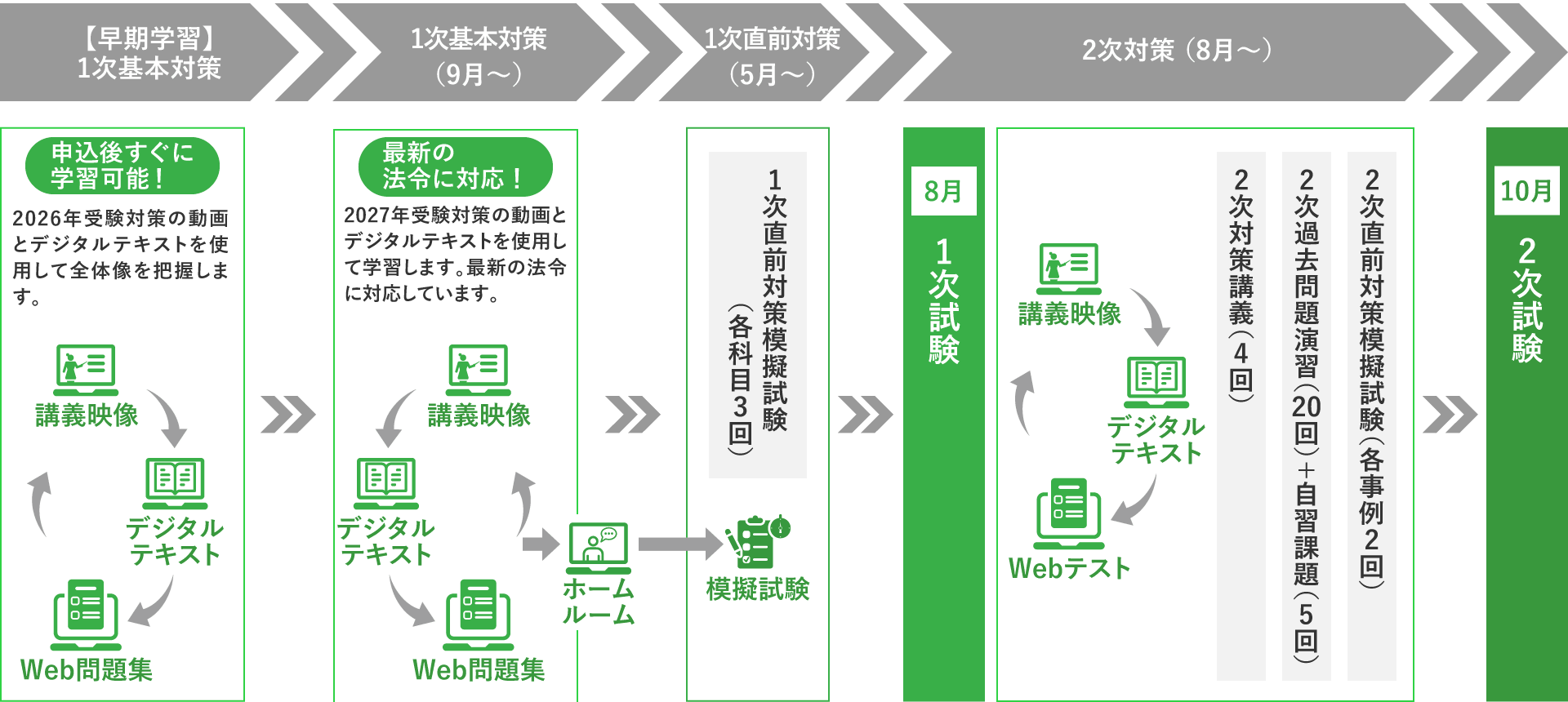 タイパ抜群! 新感覚Web通信講座 早期学習により1次試験科目を2回転学習!