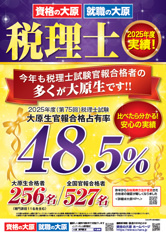 初学者必見税理士という職業の話や試験制度や合格するための学習方法まで、税理士学習を始められる方に必要な情報がすべて詰まったセミナーです。大原の合格占有率が高い秘密がココにあります!
