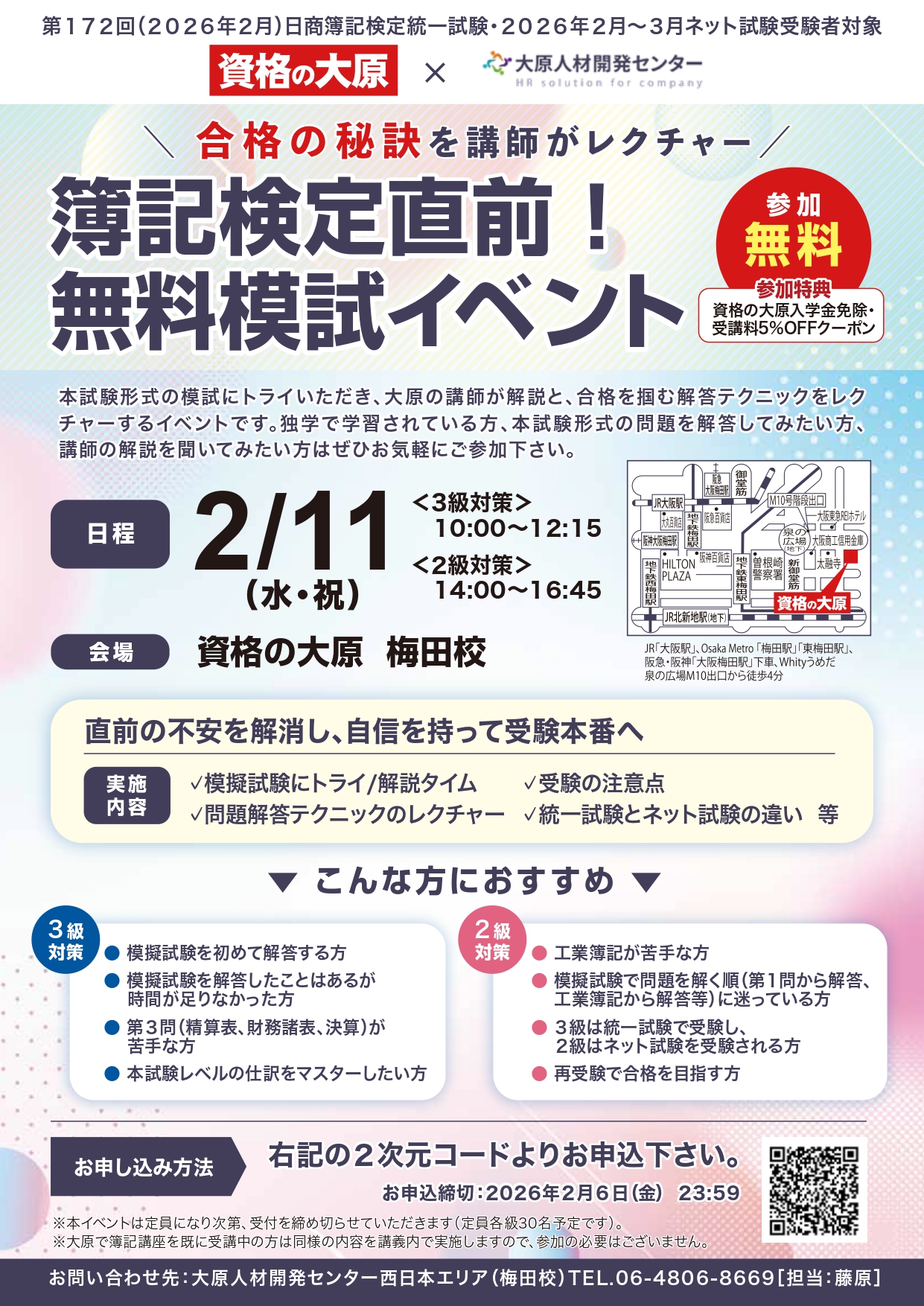 *参加特典:資格の大原入学金免除・受講料5%OFFクーポン