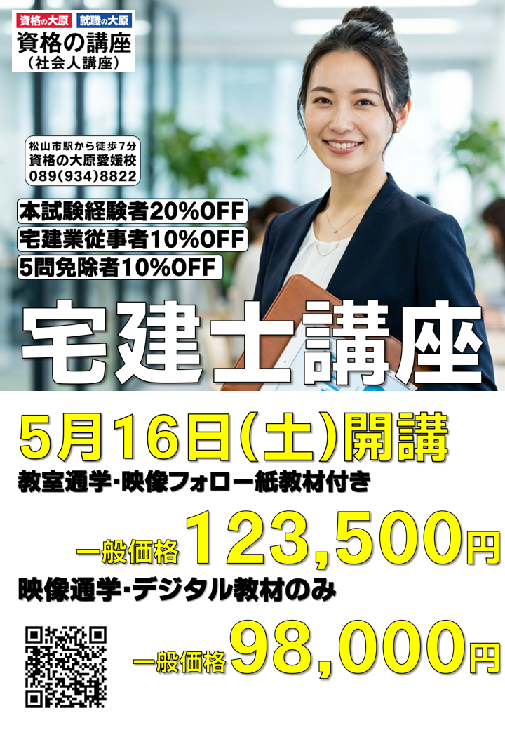受講料には、 映像講義(合格WEB)、紙教材(教室通学のみ)、教室授業(教室通学のみ)、模試がすべて含まれています。