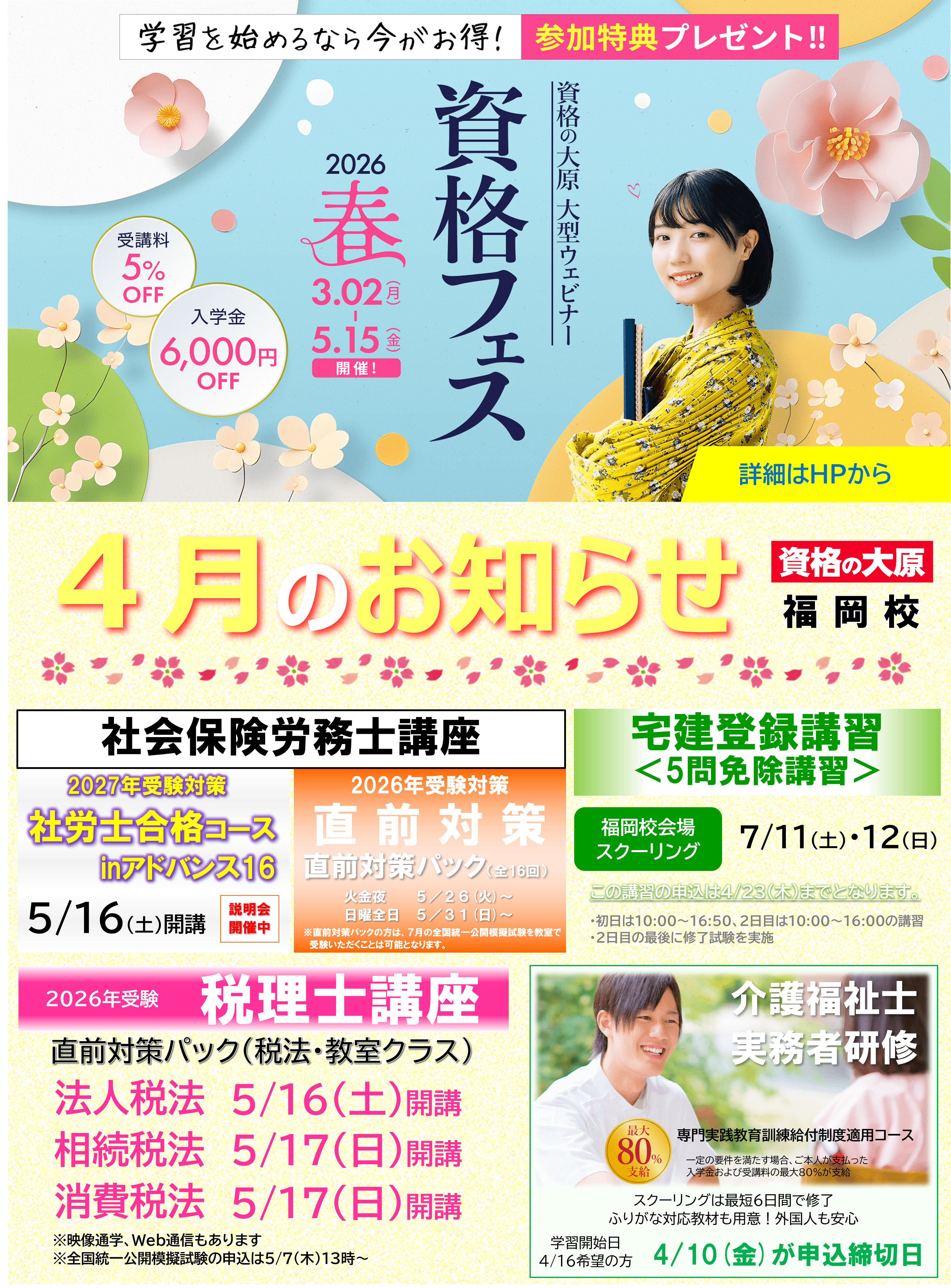 資格の大原福岡校 🌸4月のお知らせ🌸