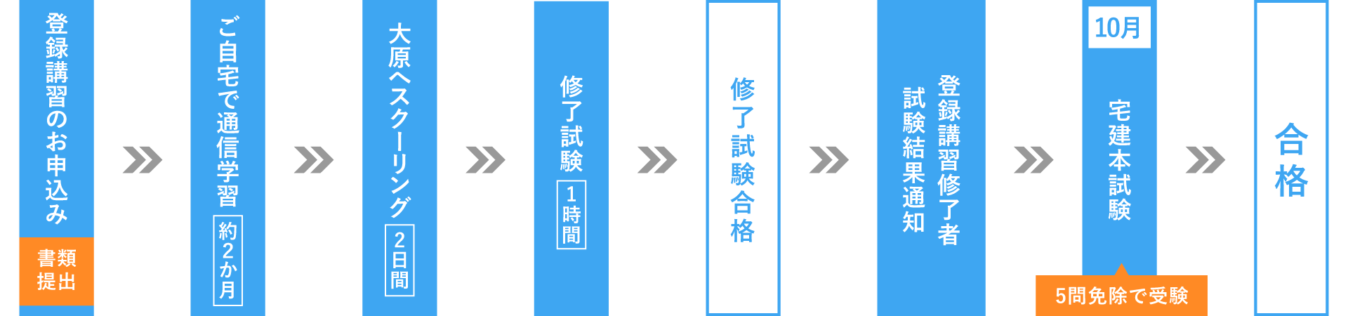登録講習内で実施する修了試験に合格した登録講習修了者には、試験結果が通知され、その交付日(登録講習修了試験の合格日)から3年以内に行われる宅建士試験において、宅建士試験問題の一部が免除されます。