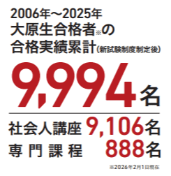 2006年~2025年の大原生公認会計士論文式試験合格者の累計人数は9,994名!
